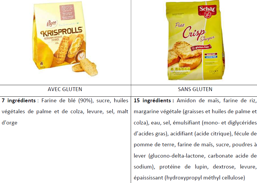 Ces produits sont peut-être sans gluten, mais avec plus d’additifs : il n’y a qu’à comparer les étiquettes…