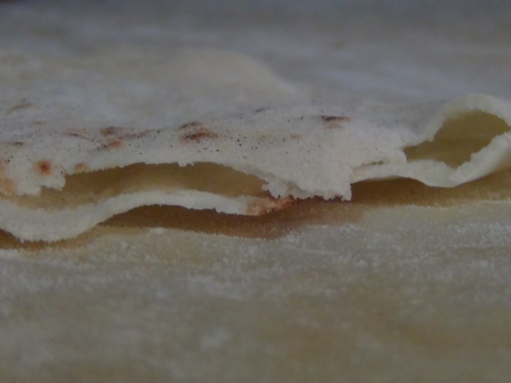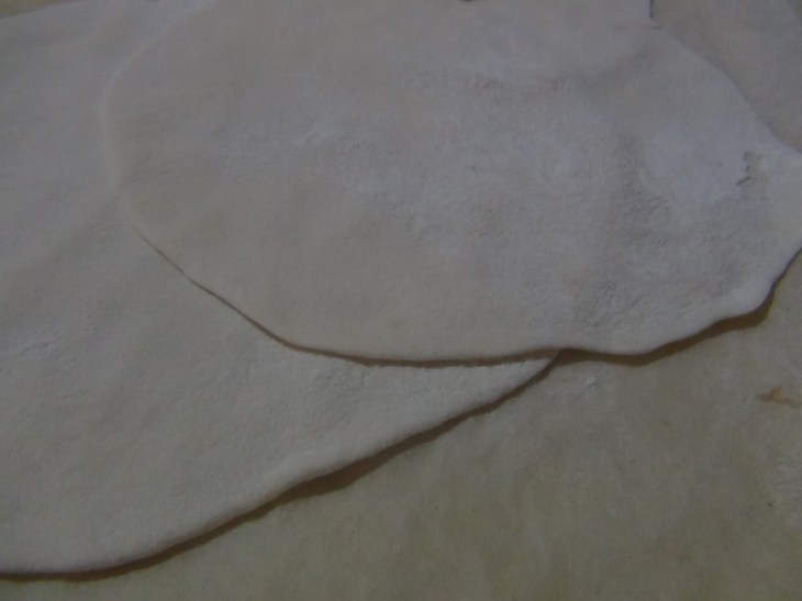 À l’aide d’un rouleau à pâtisserie, étaler chaque boule en un cercle de 20 cm environ. Au moment de l’étalage, retourner régulièrement la pâte pour qu’elle ne colle pas sur le plan de travail. Saupoudrer le plan de travail de farine si nécessaire.