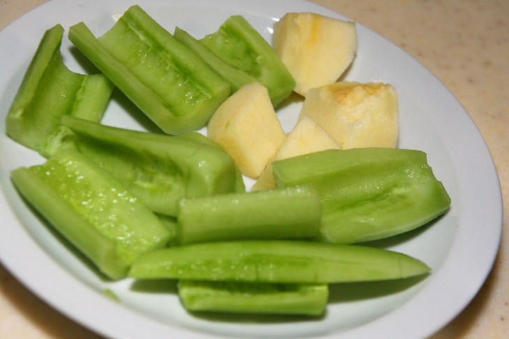Peler la peau du concombre.