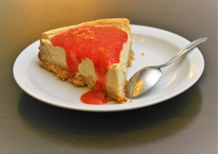 Après refroidissement, couvrir le moule d’un film plastique et mettre le cheesecake au frais au moins 4 heures avant de déguster. Plus le temps de repos au frais est long, meilleur sera le cheesecake. Toute une nuit, c’est l’idéal !