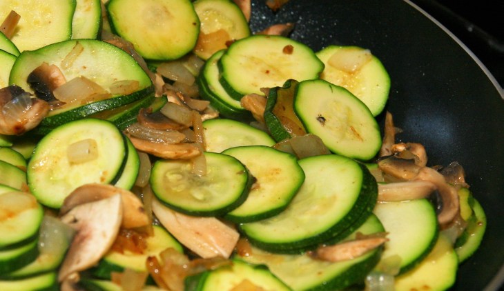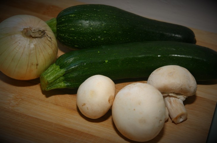 - 600 g of vegetables (gross weight): zucchini, mushrooms and onions