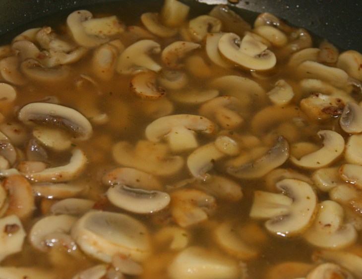 When the mushrooms start to get golden, sprinkle the flour over the mushrooms.