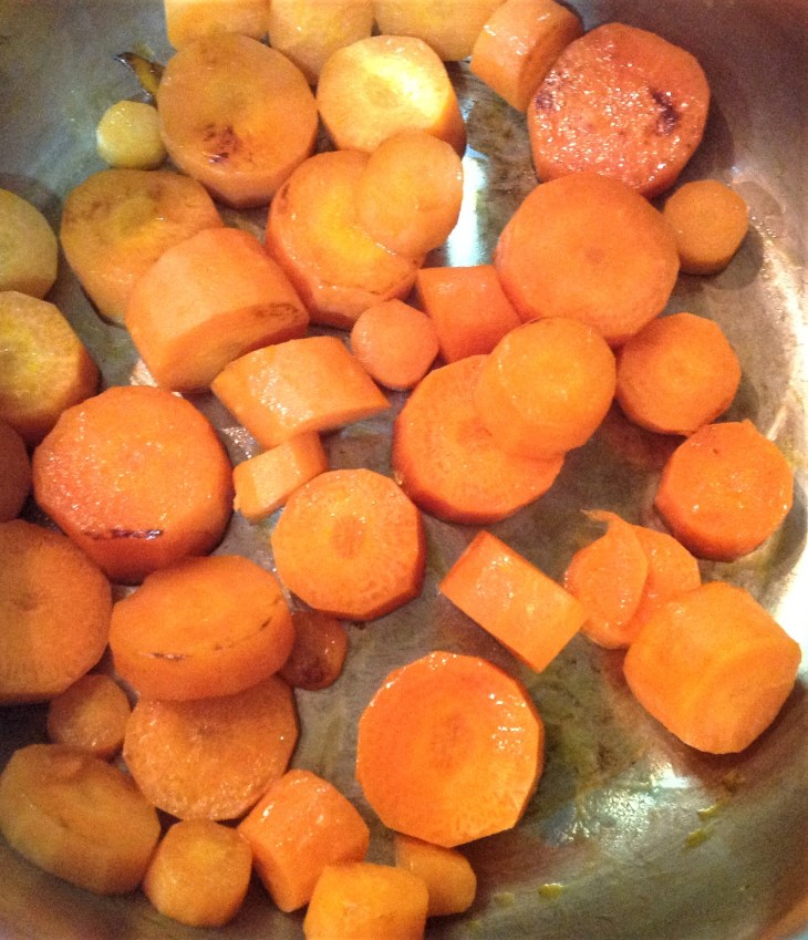 Dans une casserole, faire chauffer l’huile et y faire rissoler les carottes pendant 5 minutes.