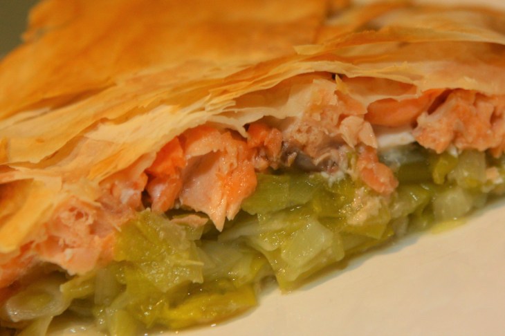 Sous une pâte croustillante, découvrez le parfait équilibre de saveurs entre du saumon et une fondue de poireaux.