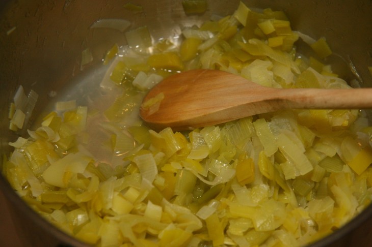 Enlever le couvercle sur la casserole des poireaux. Poursuivre la cuisson du poireau à découvert en augmentant la puissance du feu et en remuant de façon à ce que l’eau en excès s’évapore.