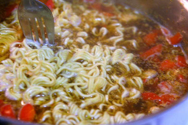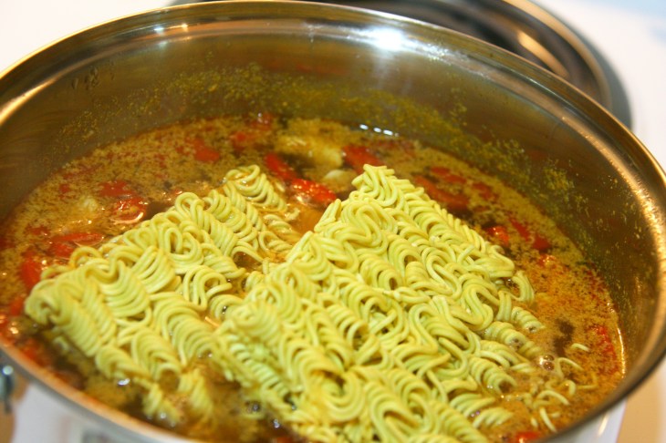 Lorsque l’assaisonnement est ajusté, ajouter les nouilles dans la casserole.