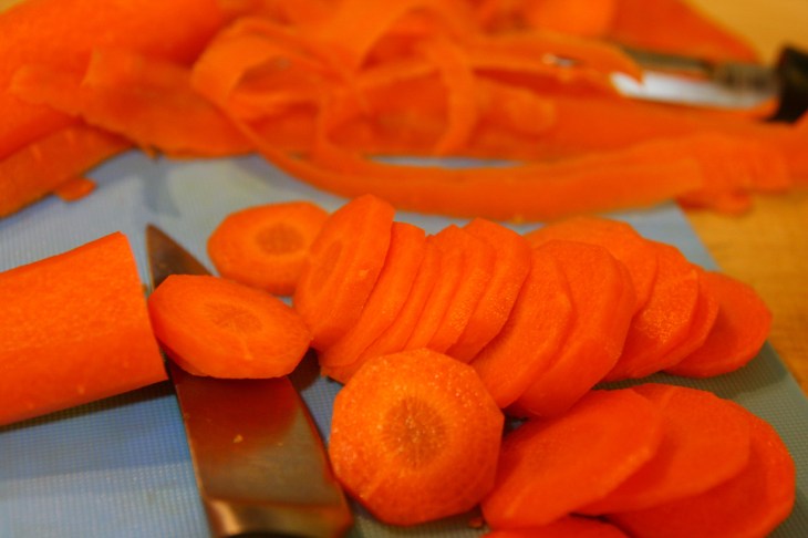 Lorsque les ingrédients commencent à accrocher à la casserole : verser 1 litre d’eau froide sur les ingrédients. Ajouter ensuite ½ cube de bouillon de volaille et 1 cuillère à café de coriandre moulue.