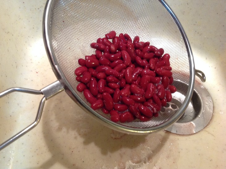 Pendant ce temps, égoutter les haricots rouges.