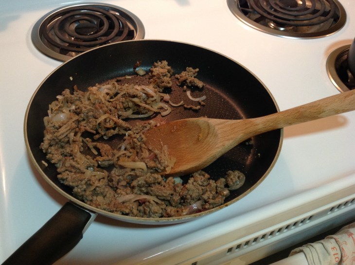 Rajouter ensuite le bœuf haché et laisser rissoler encore quelques instants.