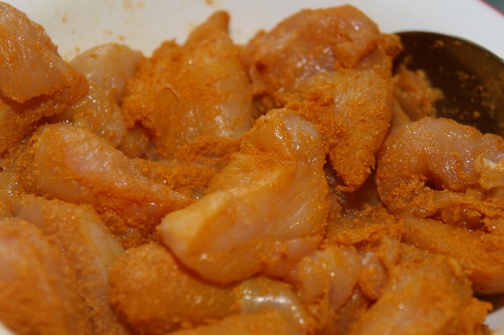 Let the chicken with the spices sit in the fridge while you prepare the other ingredients for the recipe.