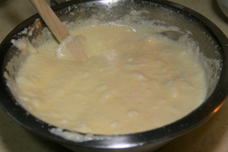 Verser sur la mousse obtenue à l’étape 4. Mélanger en brassant tous les ingrédients délicatement à l’aide d’une spatule.