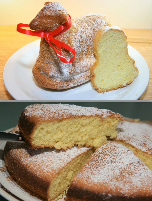 Un gâteau fait d’une simple pâte à biscuit (sans beurre). Il peut être mangé nature, avec un coulis de fruits, une touche de confiture… En Alsace (région Est de la France), ce type de gâteau est dégusté sous la forme de « Lamala » (petit agneau) lors du petit déjeuner du dimanche de Pâques.