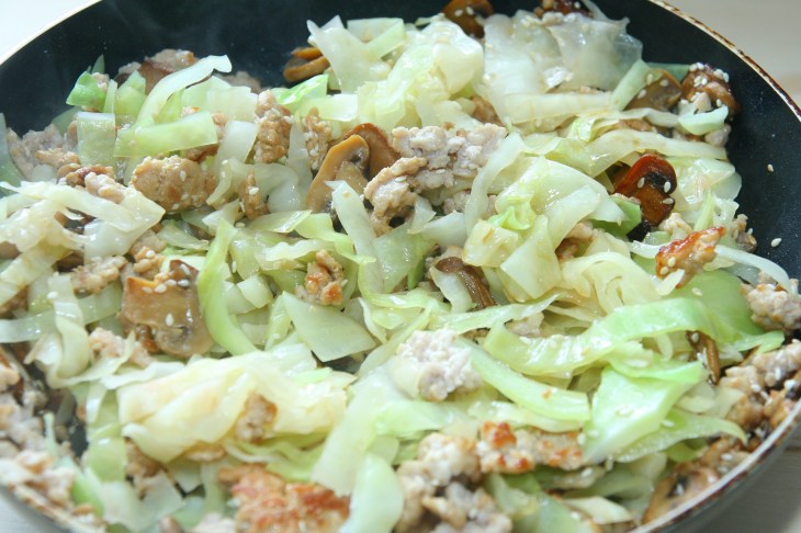 Sauté de porc au chou et champignons