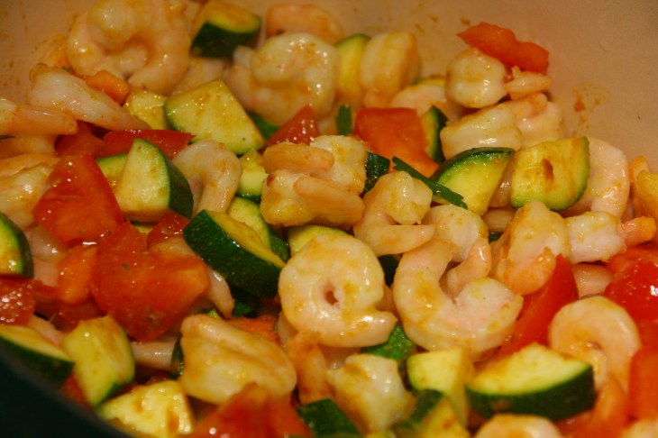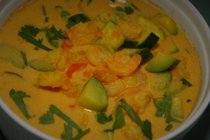 Un repas aux crevettes rapide et facile à réaliser… Il est garni de courgettes et mijoté dans un délicieux lait de coco aromatisé au curry.