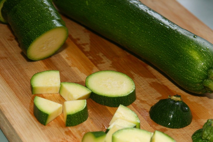 Courgettes : Laver et retirer les extrémités. Couper les courgettes en gros dés.
