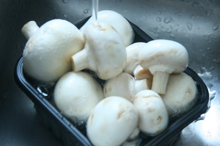 Frotter les champignons sous l’eau, puis les couper en morceaux.