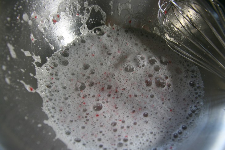 Continue to wisk the egg white with the jam. Taste the preparation, if necessary add a second spoon of jam.