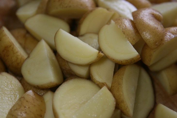 Rub the potatoes underwater to clean them. The baby potatoes have a thin and tender skin so they don’t need to be peeled.