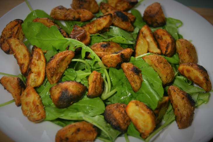 Crispy potatoes with spices and a tender arugula … this is a tasty mixture for an easy and quick to make salad!