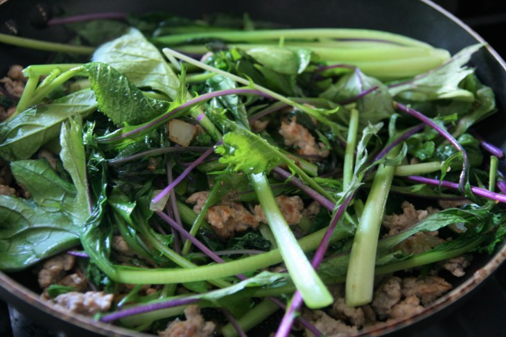 Une simple et délicieuse recette de salade cuite avec du porc haché. Une idée de plat si vous avez trop de salades ou alors une qui commence à s’abîmer !