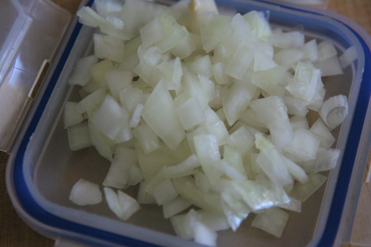 - Peler l’oignon, retirer le germe, puis rincer à l’eau. Couper l’oignon en petits dés.