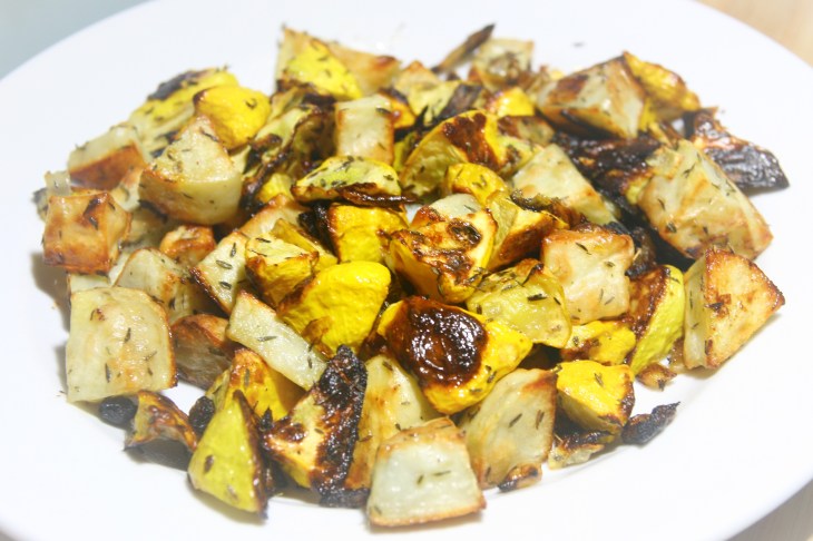 Après 15 minutes de cuisson, mélanger et poursuivre la cuisson 10-15 minutes; stopper la cuisson lorsque tous les morceaux sont bien dorés.