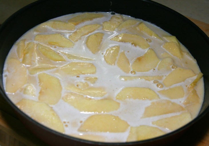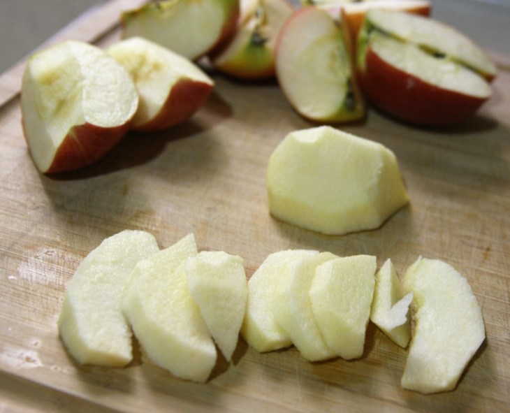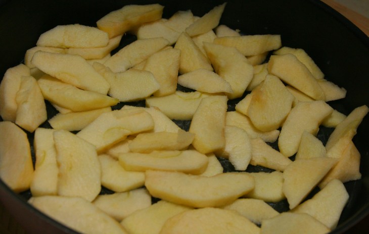 Cut the apples into slices and place them in the mold.