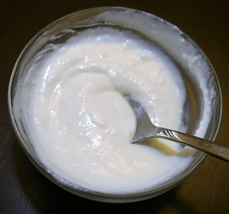 - Brasser le yaourt pour obtenir une texture lisse.
