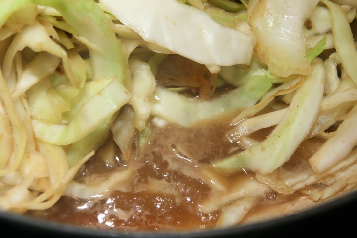 Cuire sur feu moyen (7/10) pendant 25 minutes. Remuer régulièrement pendant la cuisson. Si nécessaire ajouter un peu d’eau de façon à ce que le chou puisse cuire et n’accroche pas à la casserole.