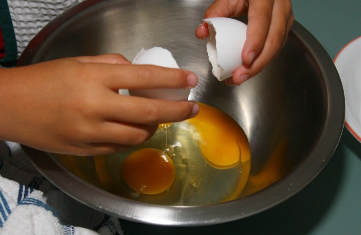 Dans un saladier, verser le reste du lait froid (150 ml). Ajouter les œufs et le sucre. Mélanger.