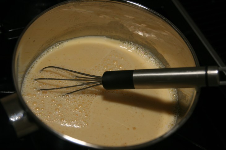 Mettre à chauffer sur feu moyen (5/10) en remuant sans cesse avec un fouet pendant 6-8 minutes. Retirer du feu lorsque la crème a épaissi.