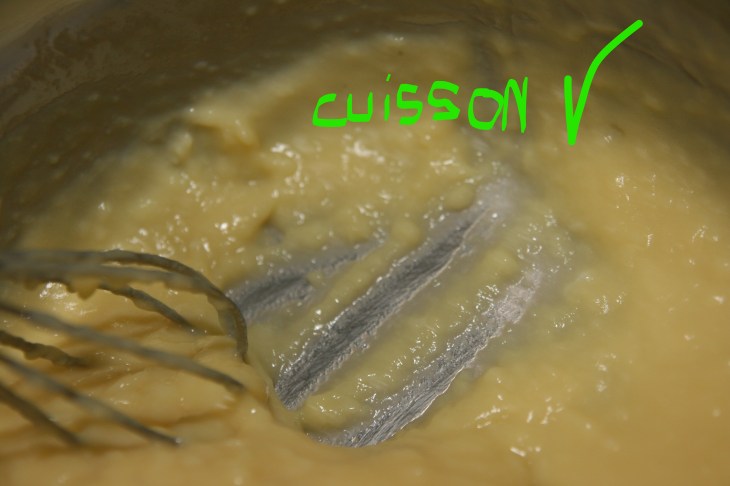 Verser le lait chaud vanillé sur la préparation faite à l’étape 2. Mélanger.