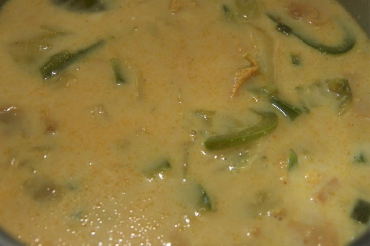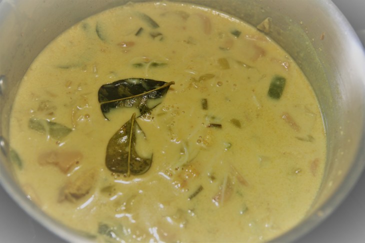 Après 15 minutes de cuisson, retirer le couvercle de la casserole et abaisser la puissance du feu au minimum. Ajouter le lait de coco. Poursuivre la cuisson 2 minutes sur feu doux.
