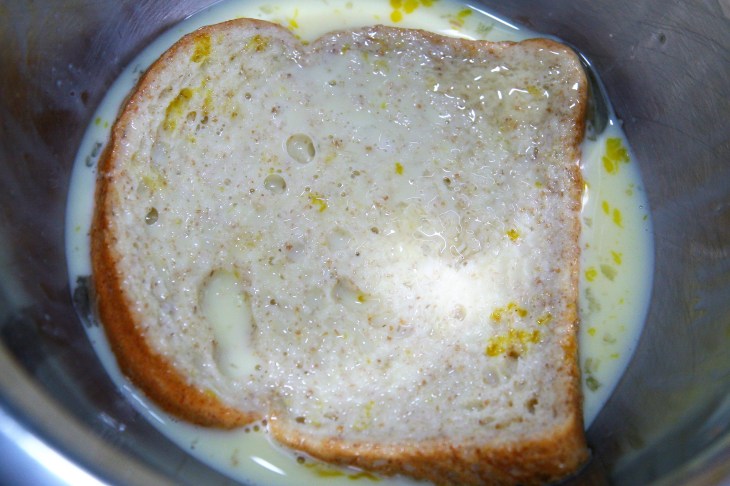 Dip the bread in this preparation; one slice after another, turning them over to soak them well.