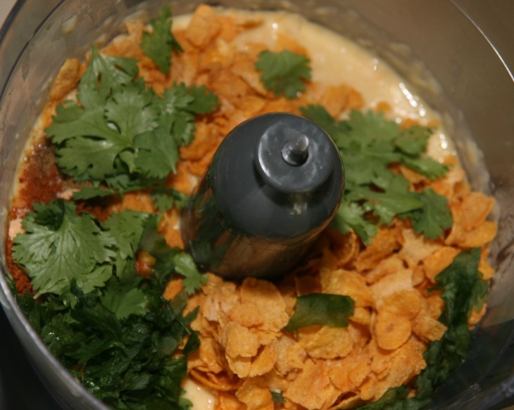 Ajouter ensuite dans le robot tous les autres ingrédients : cumin, pétales de maïs, oignon, sel, paprika, persil et coriandre.