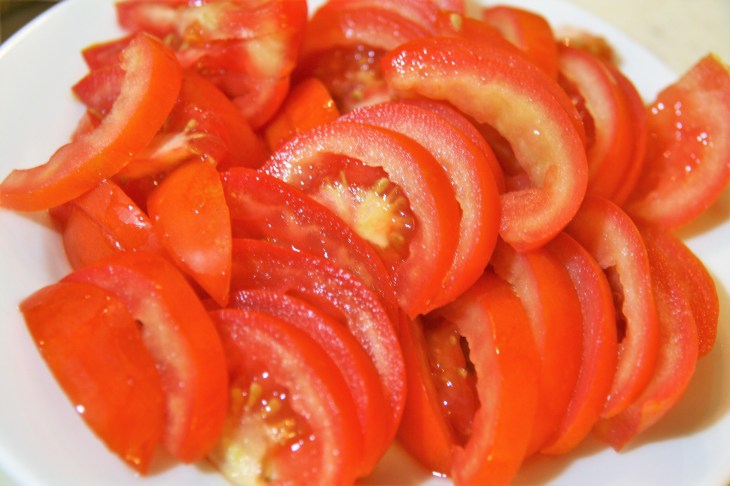 - Couper les tomates fraîches en rondelles