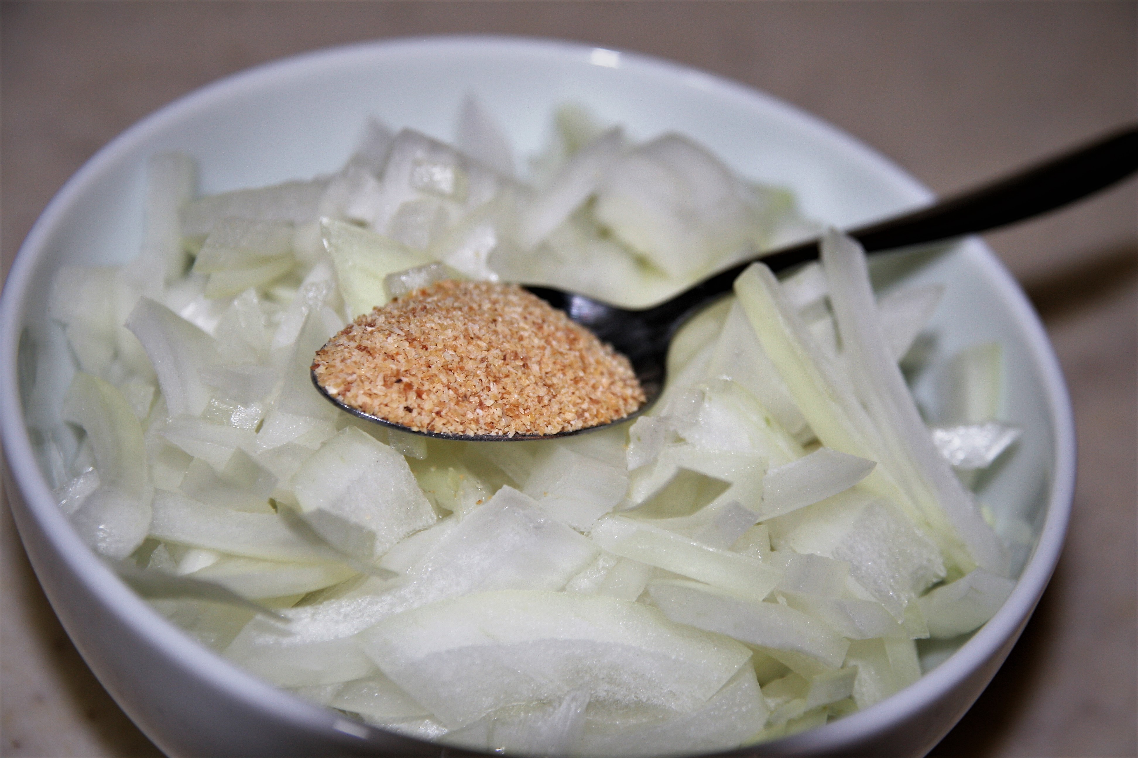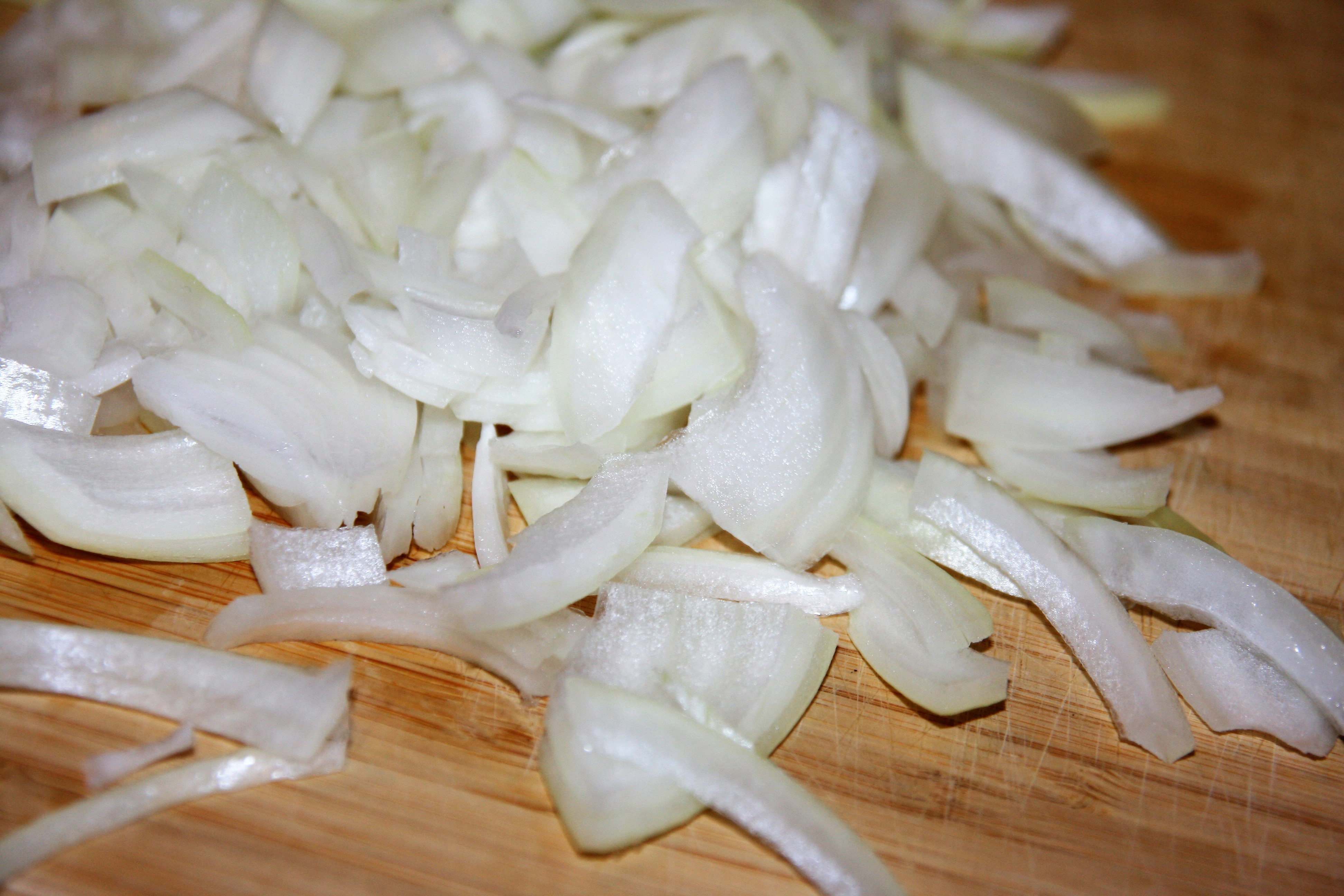 Peler l’oignon et le rincer à l’eau. Emincer l’oignon.