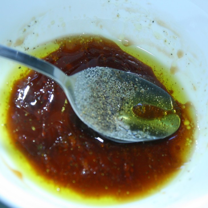 Dans un bol, mélanger les ingrédients de l’assaisonnement. Saler et poivrer à votre goût. Réserver.