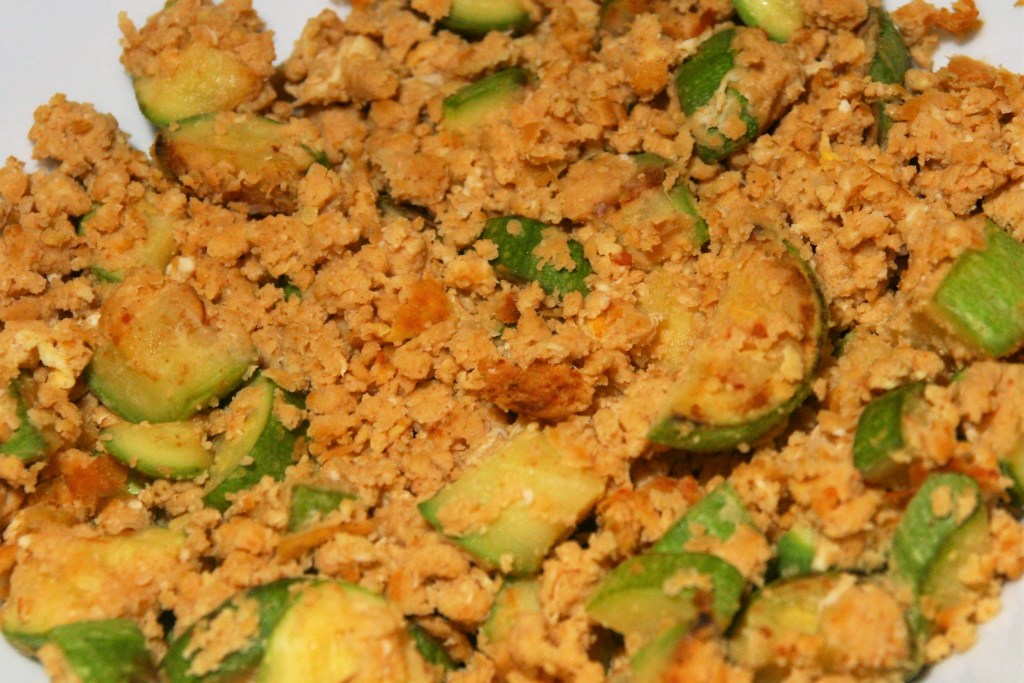 Scrambled eggs with zucchini and hummus. A light and fragrant recipe!