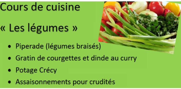 Liste des thèmes disponibles à ce jour : « Les légumes », « Pizza », « Les desserts au lait et yaourt », « Lunch-box », « Poulet » et « Les légumes d’hiver ».