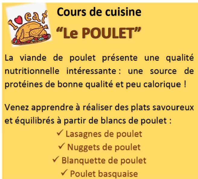 Alliant recommandations diététiques et mise en pratique, ces ateliers vous apprennent toutes les astuces et conseils pour bien manger au quotidien. Des ateliers à thème particulier vous sont régulièrement proposés.