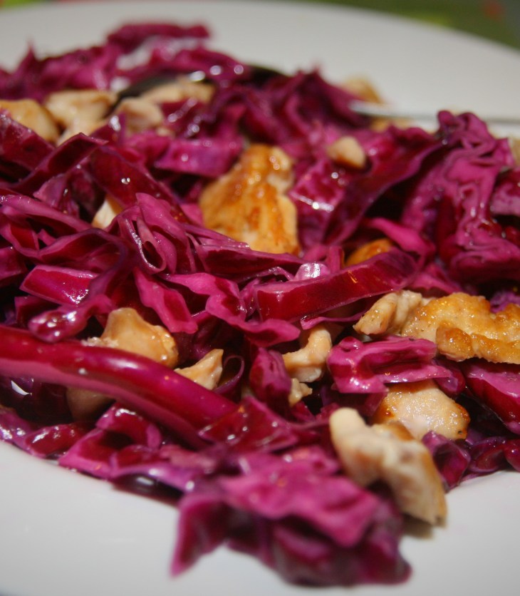 Cabbage marinated for several hours in apple juice and honey … to make a sweet and fruity salad!