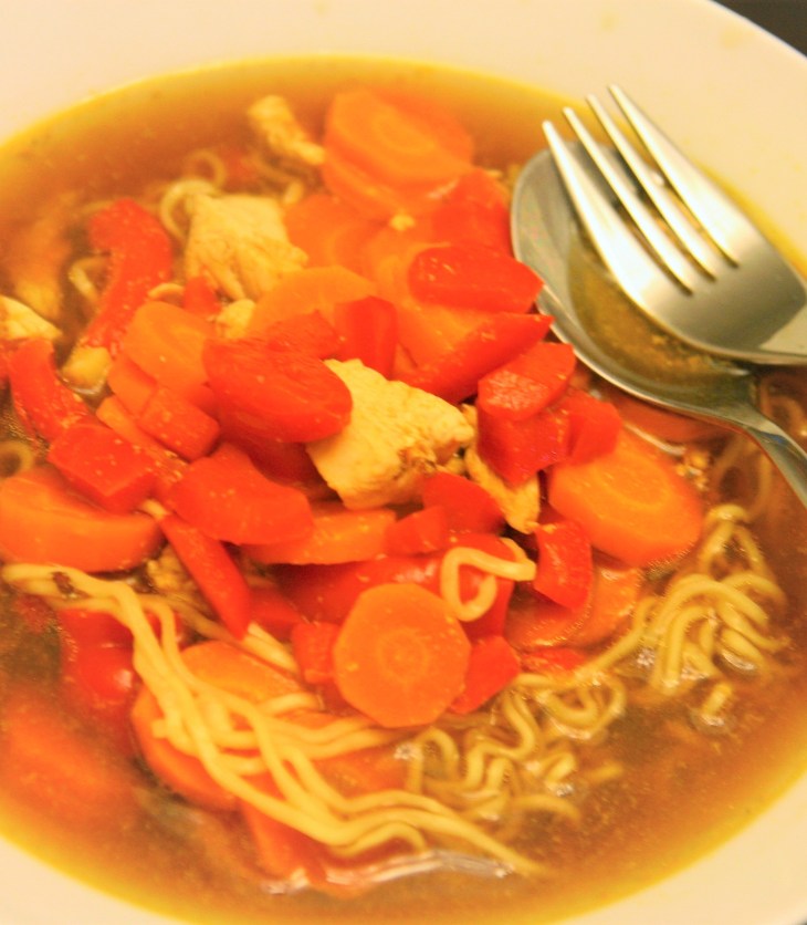 Crunchy vegetables and a ginger broth bring a note of freshness to this soup