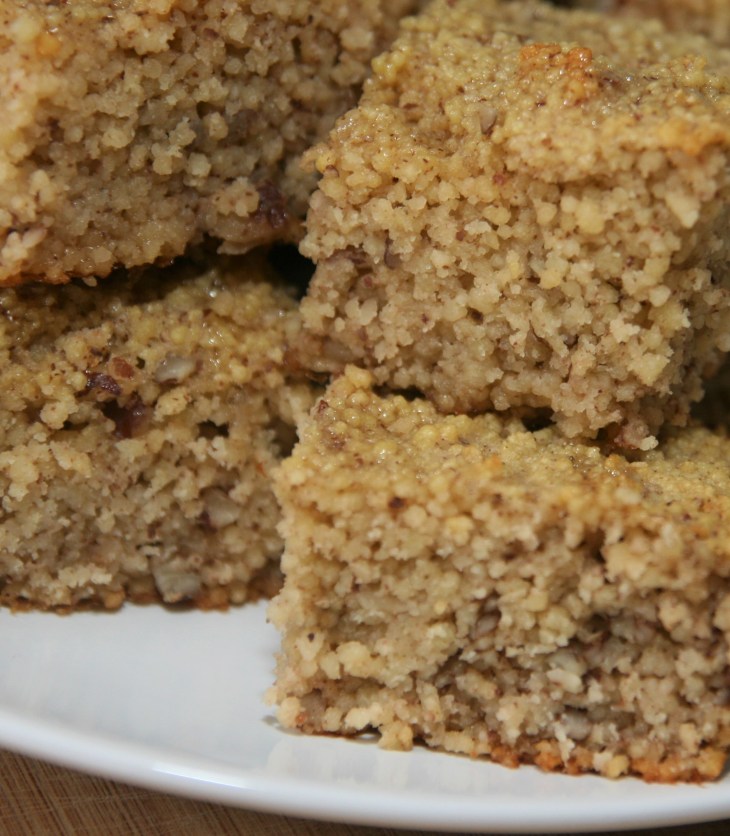 Cake made with semolina and walnuts, soft and lightly soaked in maple syrup … to be enjoyed at breakfast or as a snack!